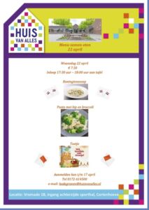 22 april gaan we weer koken, aanmelden kan t/m 18 april
