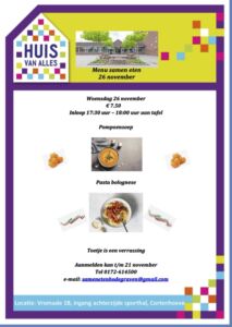 26 november gaan we weer voor u koken. Aanmelden kan t/m 21 november