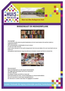 Boekenkast en meeneem kast. open als er een aktiviteit is